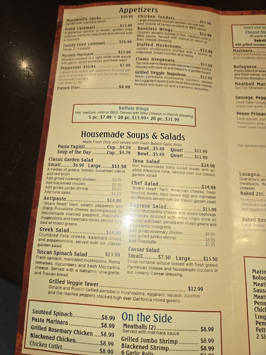 - Baked Raviolis – Large cheese-filled delights topped with marinara and mozzarella.