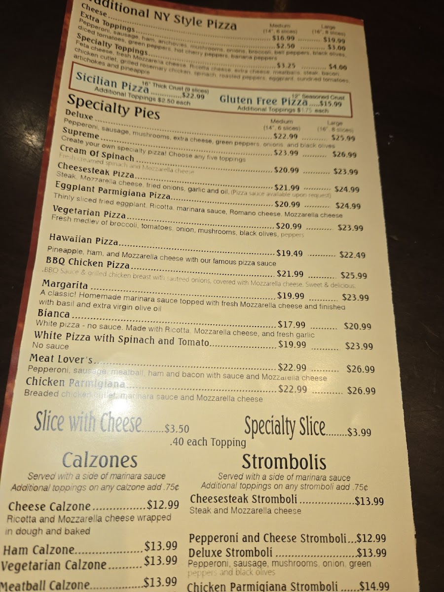 - Medium Pizzas – Varieties like Eggplant Parmigiana and Margarita cater to diverse cravings.